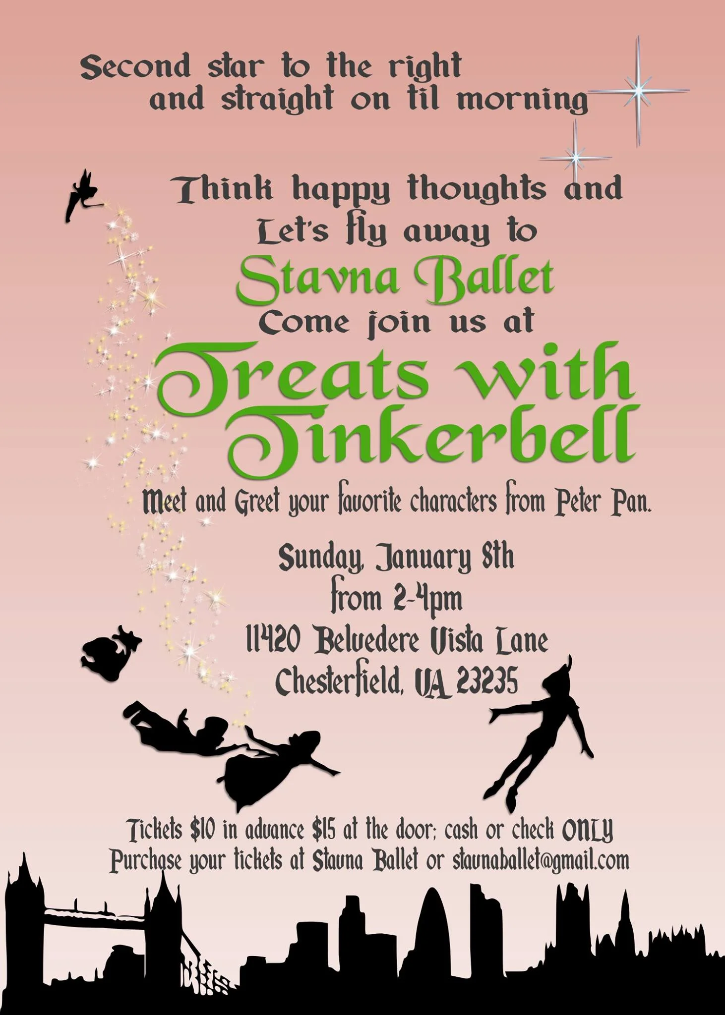 Treats with Tinkerbell is our annual meet and greet with Stavna Ballet company members and cast of Peter Pan. Each year we host an event for kids of all ages that features exclusive photo opportunities for the public. This unique event gives children a personal experience with professional dancers in a fun setting that includes photos with their favorite characters, special crafts, sweet treats and a sneak peek into the upcoming full length ballet of the season!